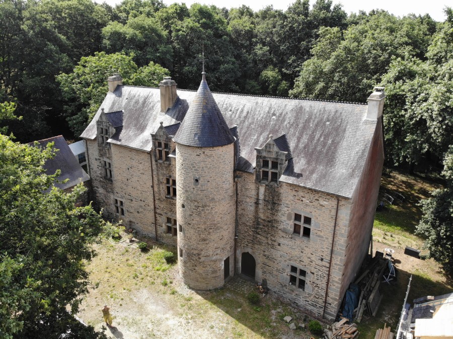 - Phase 3 : cette phase regroupe les travaux de réfections postérieurs à la phase principale. Ceux-ci sont souvent difficilement datables en dehors de leur datation stratigraphique relative. Certains linteaux de porte et le millésime 1628 présent sur la façade de la dépendance orientale laissent entendre qu’il y a eu des travaux au XVIIe siècle. Cela a notamment pu concerner la partie haute de la tour d’escalier pour laquelle nous avons pu mettre en évidence un changement de mise en œuvre et la présence d’œil-de-bœuf dans les parties hautes. Toutefois, il demeure difficile de clairement distinguer les possibles reprises du XVIIe de celle du XIXe voire du XXe siècle. Les témoignages oraux, notamment, plaident en faveur d’une installation très récente de plusieurs fenêtres sur la façade sud du corps de logis.
