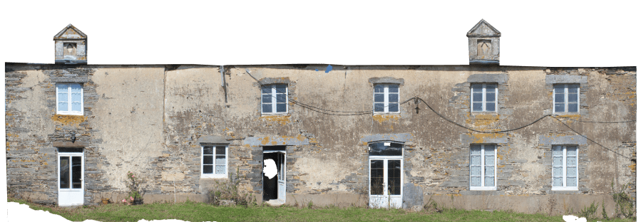 - Phase 3 : Fin du XVIIIe siècle-début XIXe siècle, reprise très conséquente de l’ensemble de l’édifice pour affirmer son caractère nobiliaire et/ou ostentatoire à travers une multiplication des ouvertures, une extension vers l’ouest et une recherche de symétrie de la façade permise par l’installation de lucarnes à fronton triangulaire. La documentation écrite nous incite à lier cette phase au personnage de Laurent de la Houssaye.